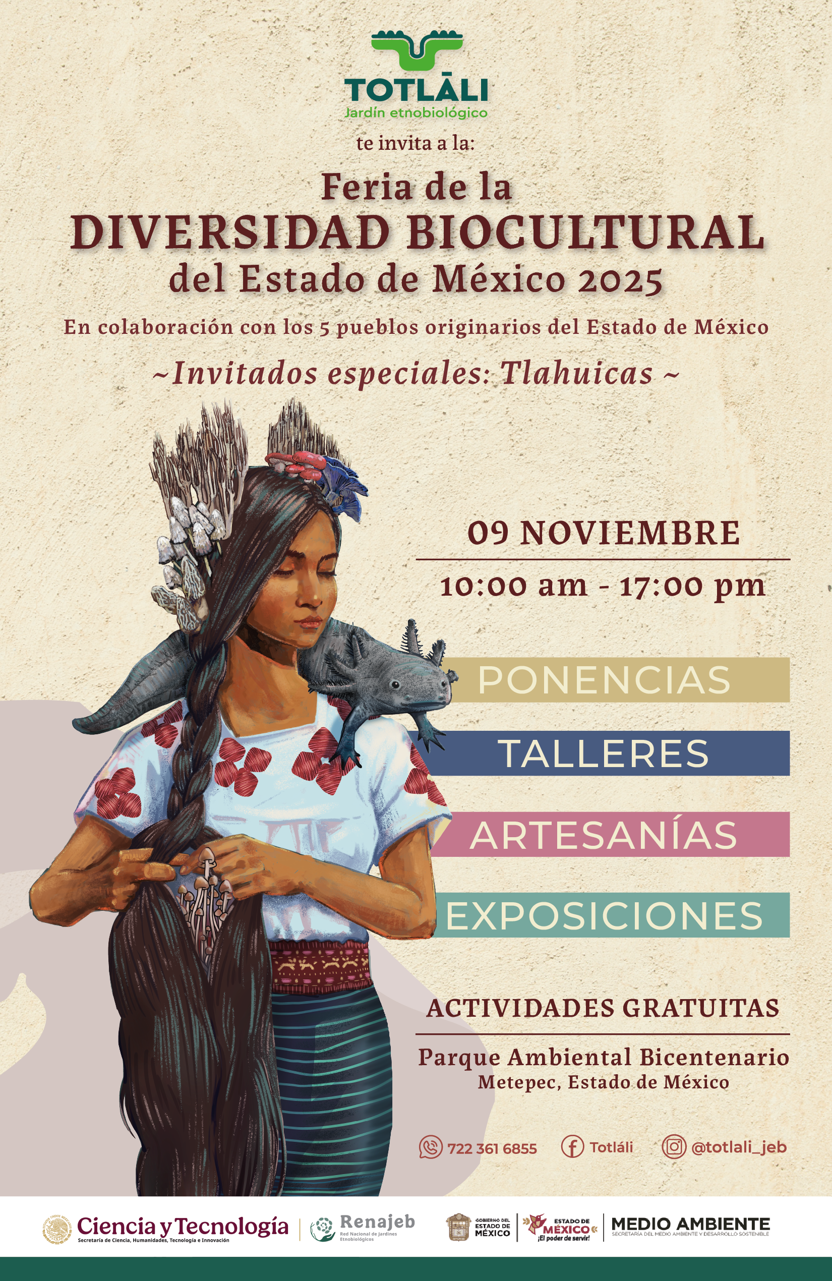 Organizada por el Jardín Etnobiológico Totláli, en colaboración con los cinco pueblos originarios del Estado de México, la Secretaria del Medio Ambiente y Desarrollo Sostenible del Estado de México, la Secretaría de Ciencia, Humanidades, Tecnología e Innovación y la Red Nacional de Jardines Etnobiológicos. Esta feria se ha consolidado como un espacio de encuentro, aprendizaje y diálogo intercultural donde convergen la ciencia, el arte y la tradición.
